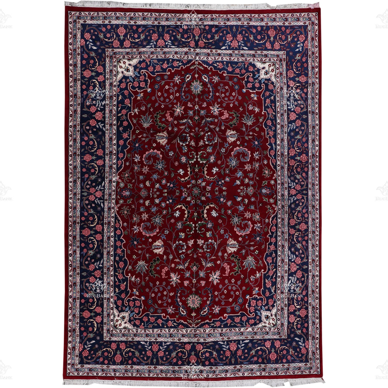 Indian rugs have long been revered for their exceptional quality and beauty. Each rug is a work of art, meticulously handcrafted by skilled artisans who have inherited the art of rug-making from generations past. The dark red and blue color scheme of this particular rug is a nod to traditional Indian aesthetics, while the Persian motifs pay homage to the rich history of carpet weaving in the region.