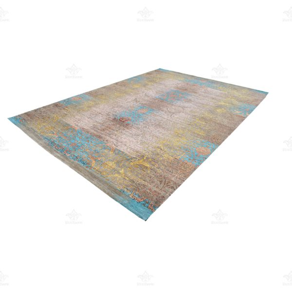The rug’s design is a harmonious blend of serene blue, warm brown, and delicate ivory hues. While it doesn’t conform to specific shapes, this blend of colors creates a visual symphony that adds depth and character to your space.