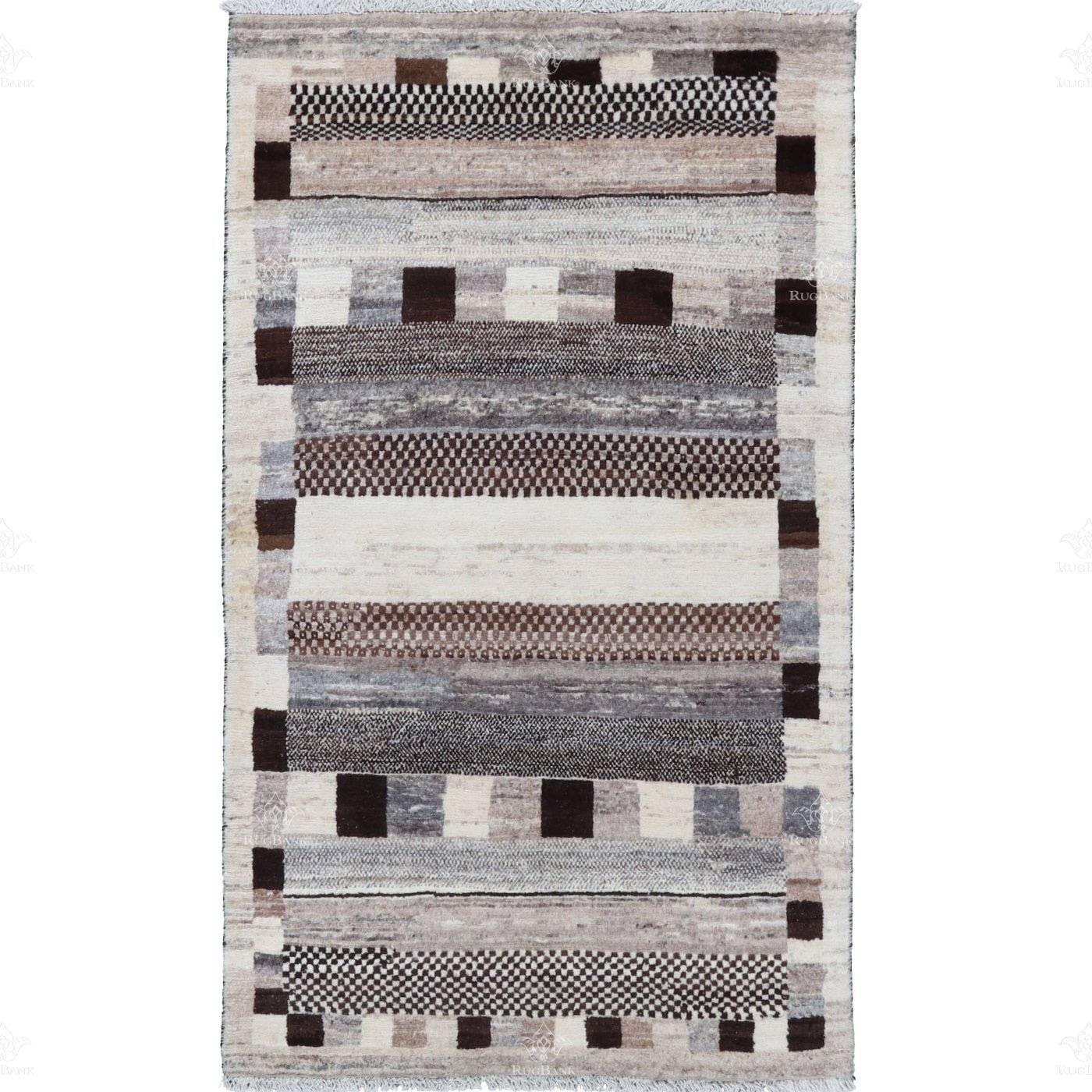 Whether you place it in a living room, bedroom, or any space in need of a chic transformation, the Handmade Persian Gabbeh Rug effortlessly elevates the ambiance. Its neutral color palette and clean design make it an ideal choice for those looking to add a modern touch to their decor while honoring the rich Persian rug-making tradition.