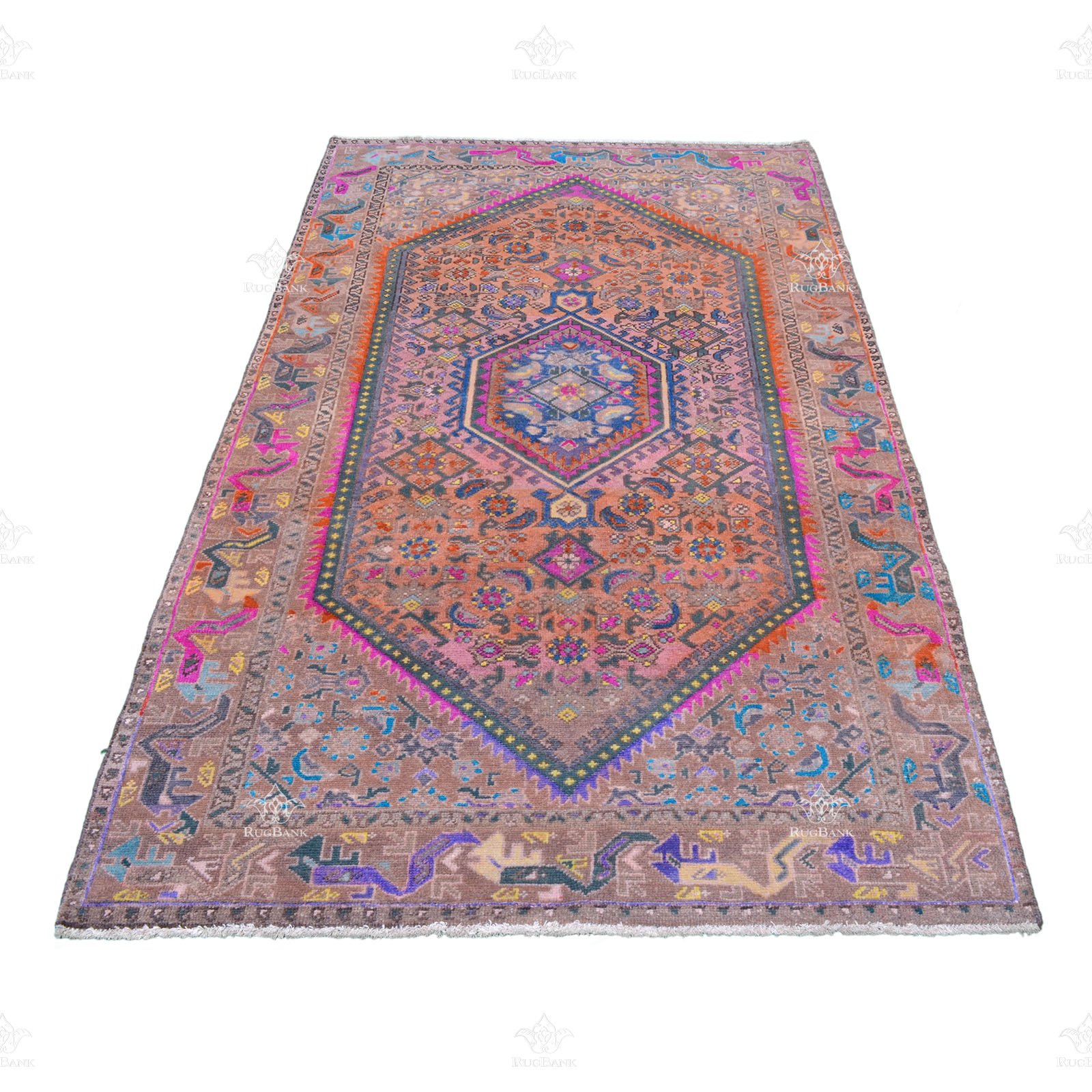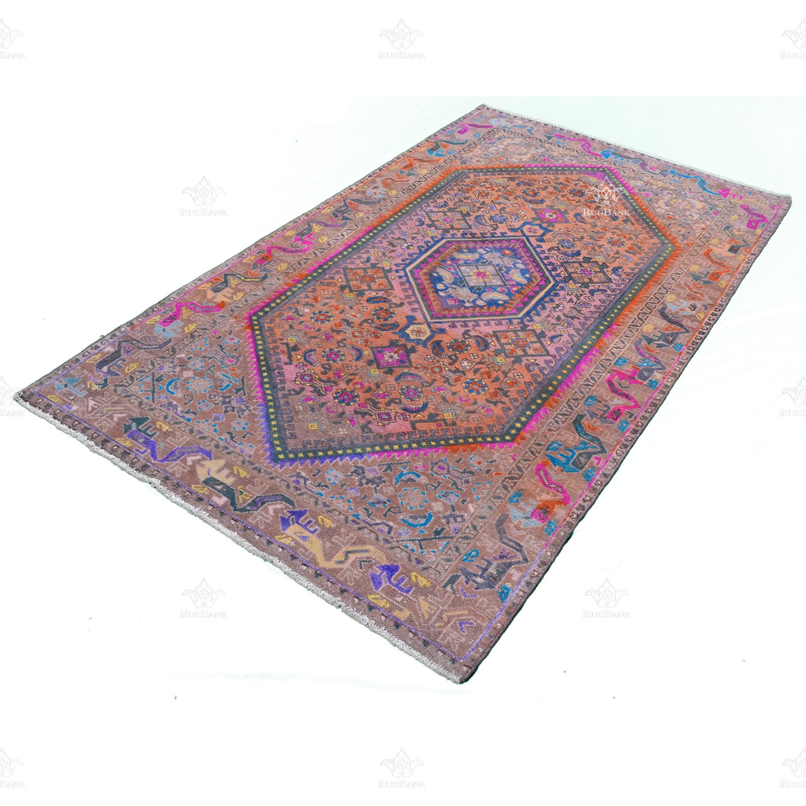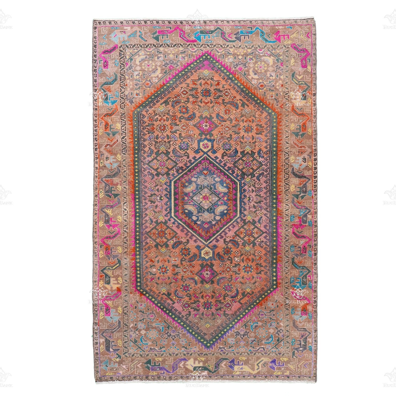 Persian Iran Mashhad rug, Vintage design with vibrant blue and pink colors – handmade with high-quality material