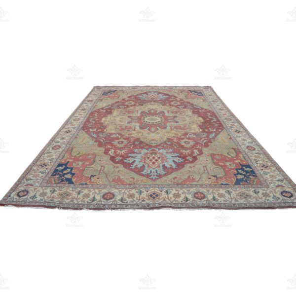 Mesmerizing 8.9×12.1 Persian Serapi design rug with its low pile, tight weave, and high-quality dense construction. Crafted in India, this rug is a true masterpiece that exudes timeless charm and beauty.