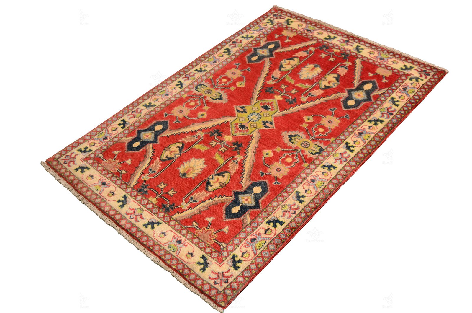Border: White border frames the rug, adding a touch of sophistication and highlighting its intricate details.