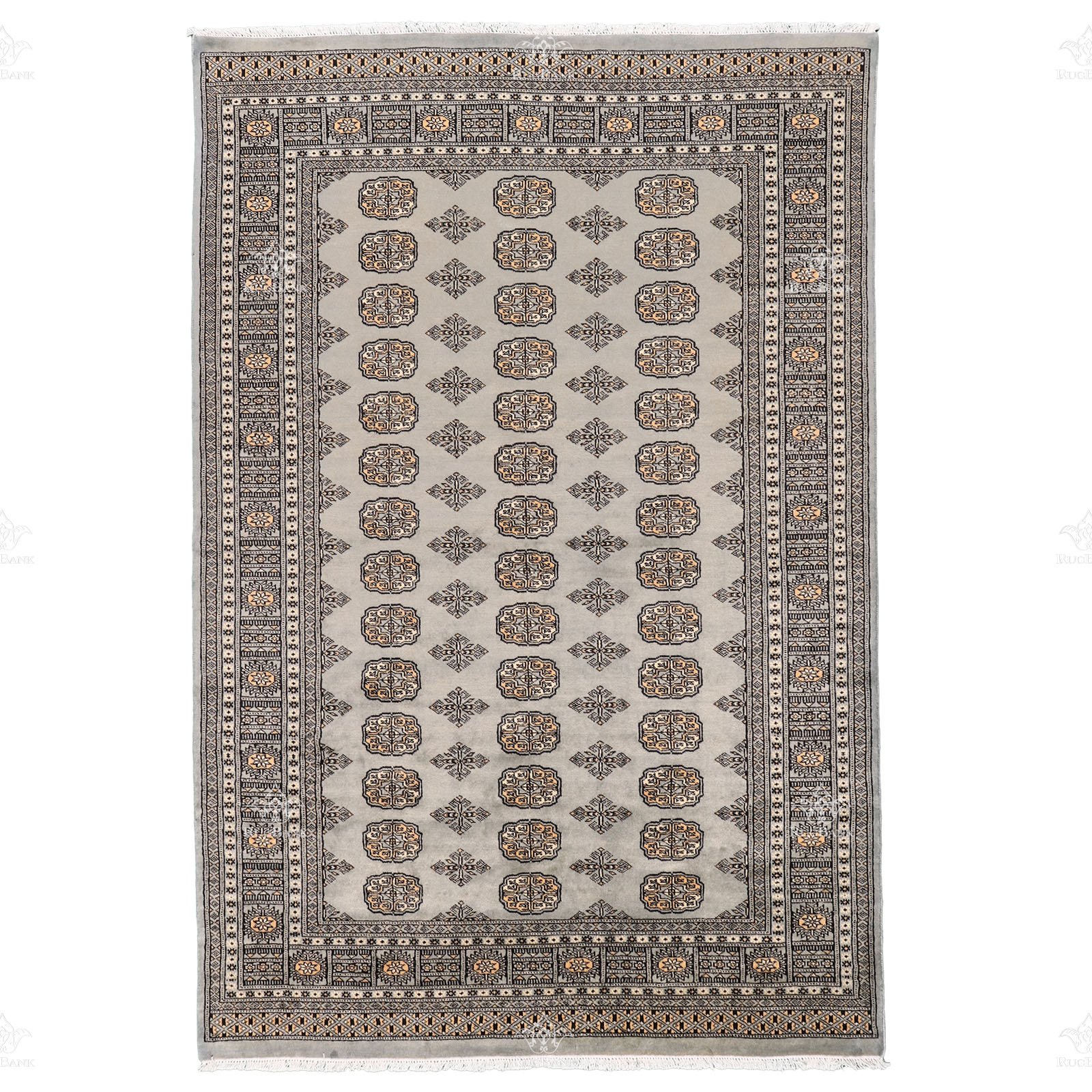 Pakistan Gray Bokhara Rug with a repeating pattern