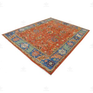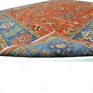This is a geometrictraditional Ariana rug with a highly detailed floral design and rich colors, handmade in Pakistan