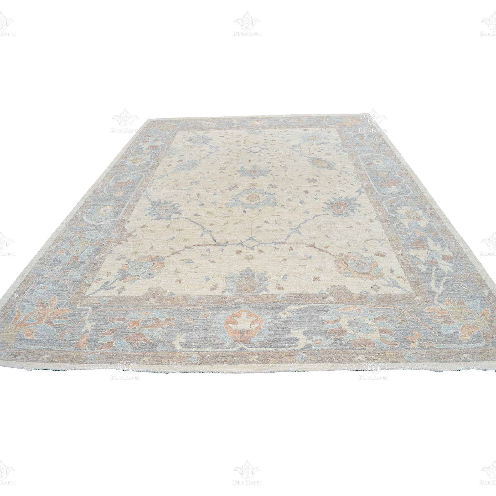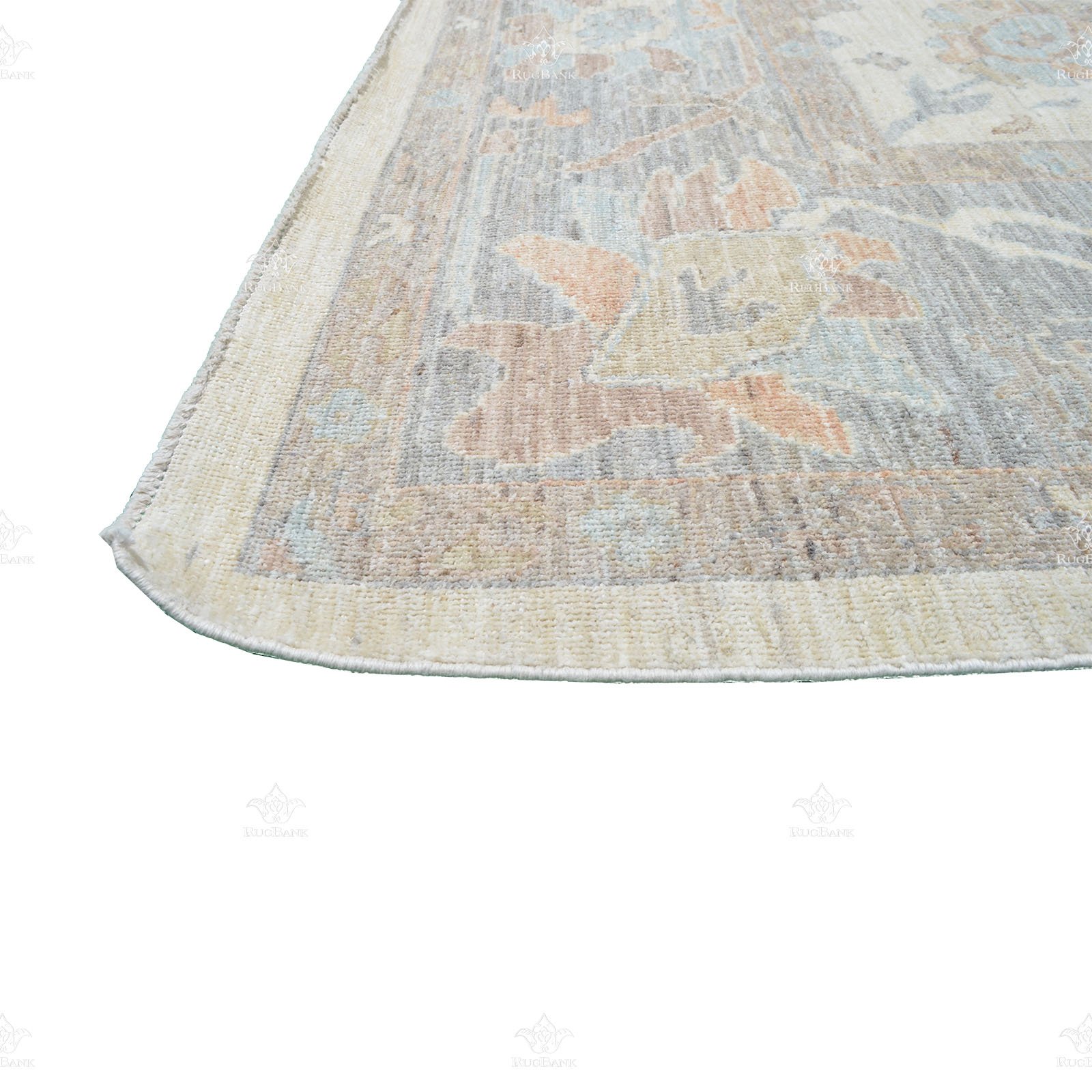 Size: 9×11.7 Exclusive Saeideh Design. Light design rug. Very subtle. White wash. Low pile. Short Fringe.