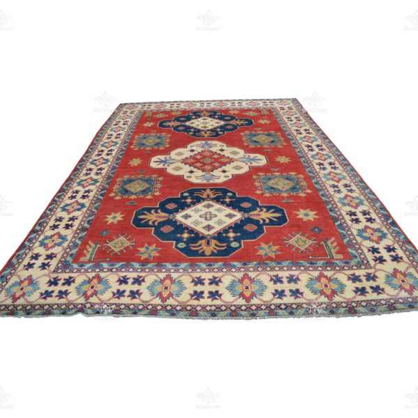 Kazak. Geometric. Rich colors. Low pile. Short Fringe